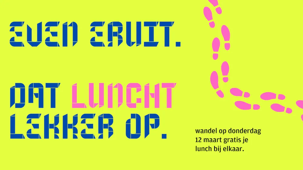 De XL Lunchwandeling loop je ergens tussen 11.45 en 13.15 uur. Wanneer het jou uitkomt. Trommel je collega's op om ook even een frisse neus te halen, de Spoorzone beter te leren kennen én een gratis hapje en drankje te scoren bij de stops die wij voor jullie hebben bedacht.